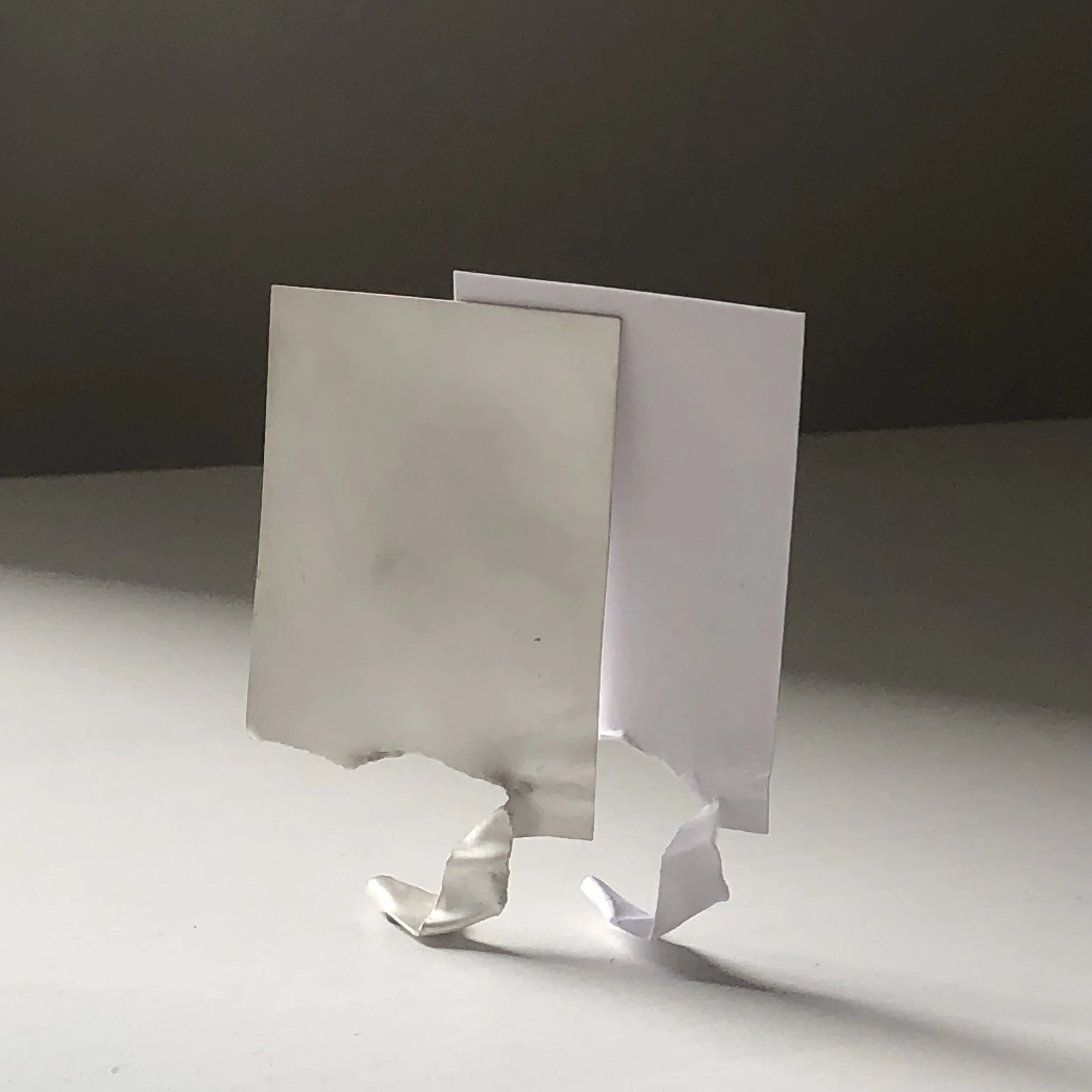 Made of 0.5 sterling silver plate. bent into shape. I dedicate this ring to all the pieces that, before they could prove themselves, have been wiped out on my imaginary pro and contra list.